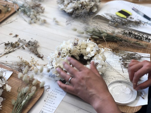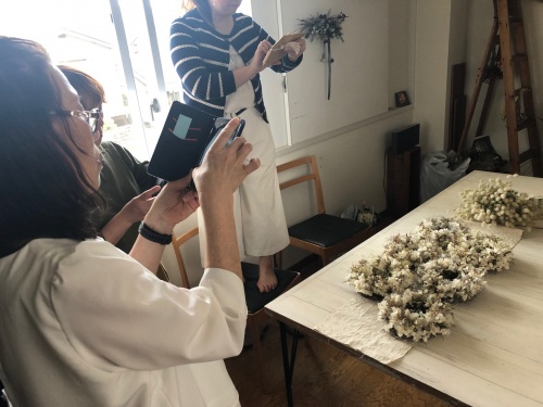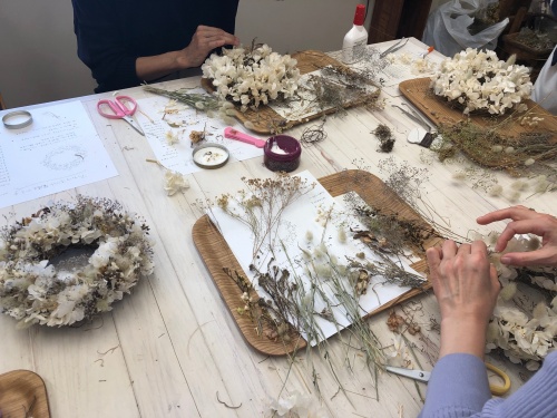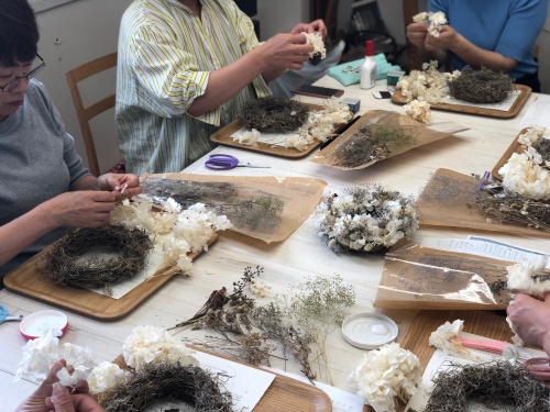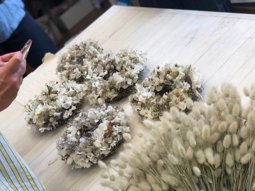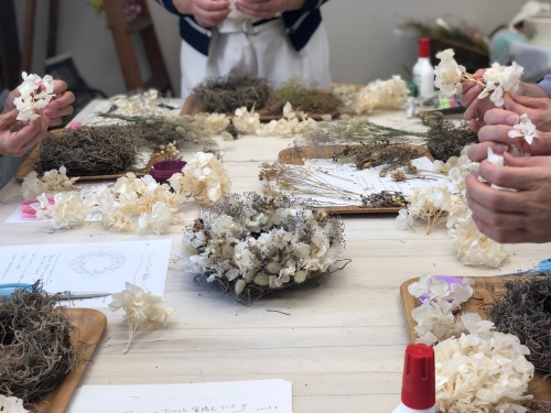 私自身は、幾度と製作してましたがレッスンで作るのは花材集めが大変だなぁと思っておりましたが、やっとこさなんとか実現できました!!