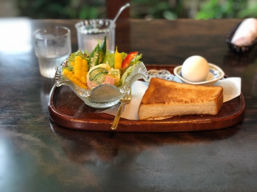 私は、お昼ご飯替わりに パン🍞とサラダ🥗と卵付き🥚(150円プラス)でホットコーヒー☕️。(全部で550円)にしました❤️