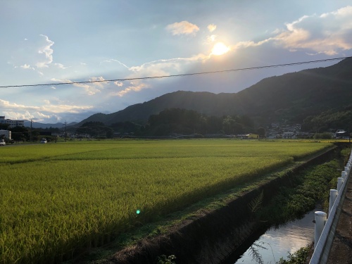 この稲穂たわわの横の水路を挟んでひまわり🌻は咲いています。