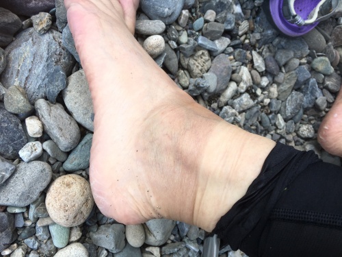 私の足、レギンスと靴下の間が日焼け(σ≧∀≦)σ痛いよぉ〜(σ≧∀≦)σ、帯のようになってるのわかります?
