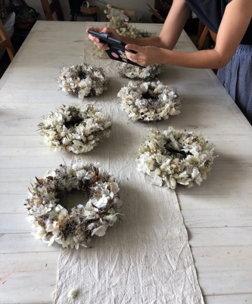 紫陽花以外の花の入れ方で、ガラリと変わりますね。