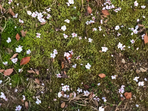 歩いていると、こんなのを発見!! 桜の花がたくさん落ちている⁈