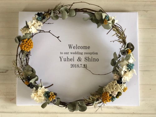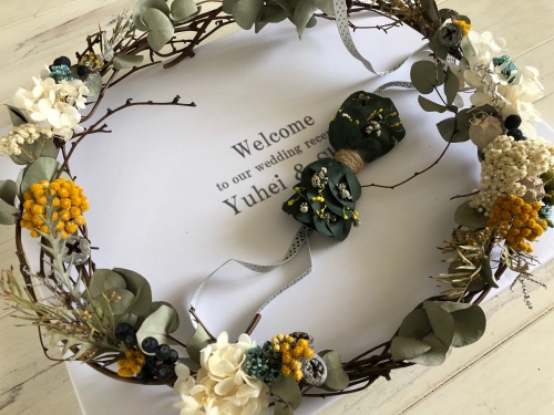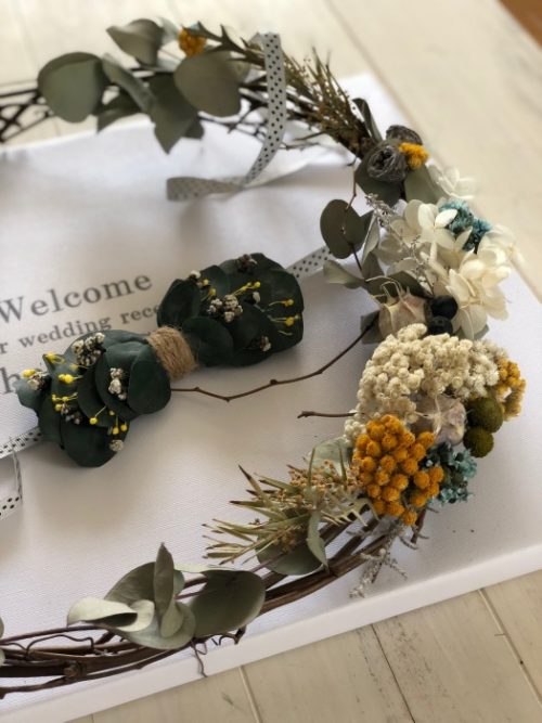 こちらは、ウエルカムリースとバタフライタイです。