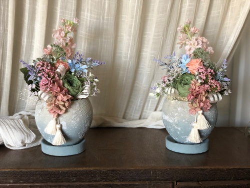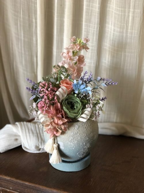 いかにも仏花という花材ではなく、寂し過ぎず 優しく 少し華やかで