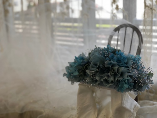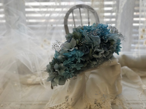 紫陽花をテーマとした衣装に付けるもので、チュールは持ち込みです。