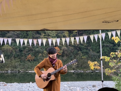 仁淀川と山の紅葉を🍁背に、せっとんの歌が聴ける🎵