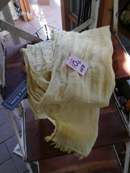 黄色のリネンのスカーフ。人気のリーノエの商品。