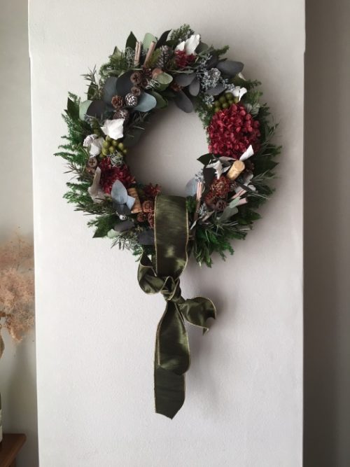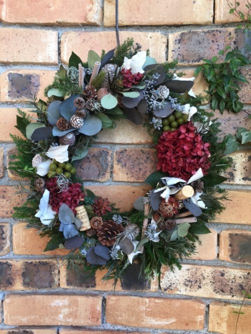 ローリエやシナモンやワイン🍷のコルクなんかを付けてリースに、イタリアン🇮🇹って感じでー