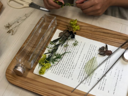 今日は、二組のハーバリウムワークショップの申し込みがありました。