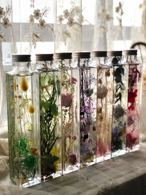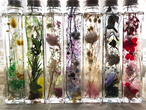ジルのハーバリウムワークショップは、この(下の)7種類の中からキットを選んでいただきます。