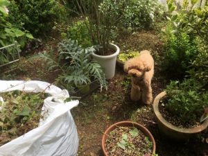 花材は山のように届き、庭の草引き、犬🐩の手も借りたいのですがー、(笑)