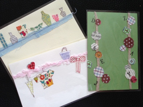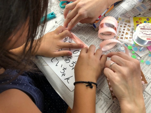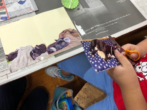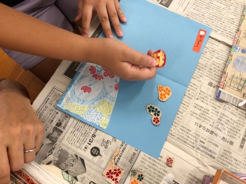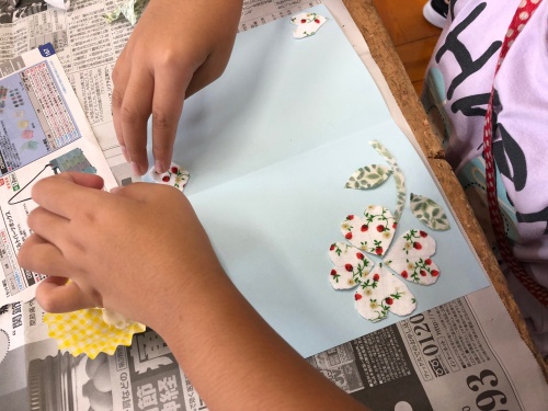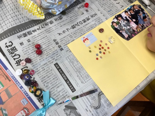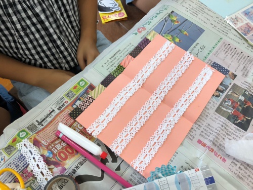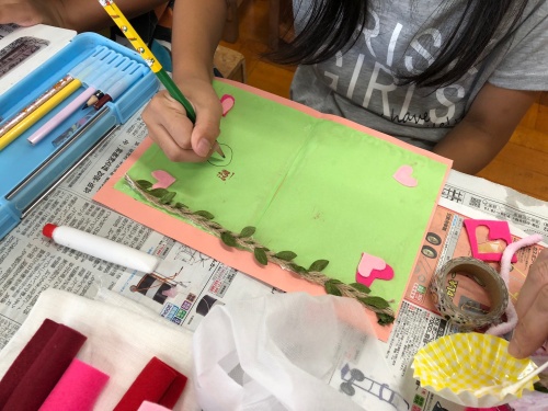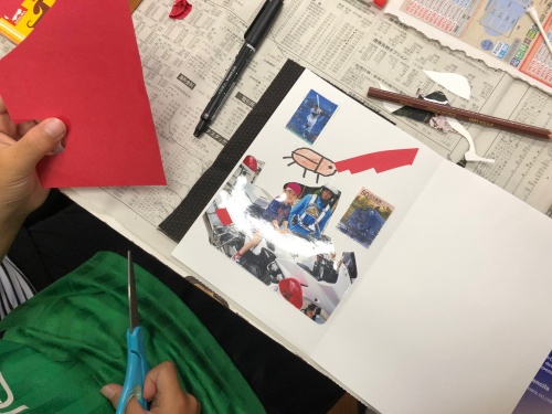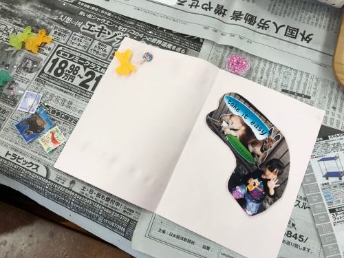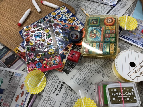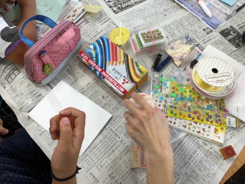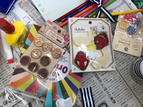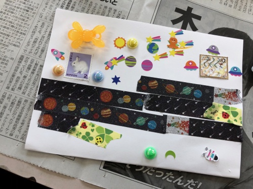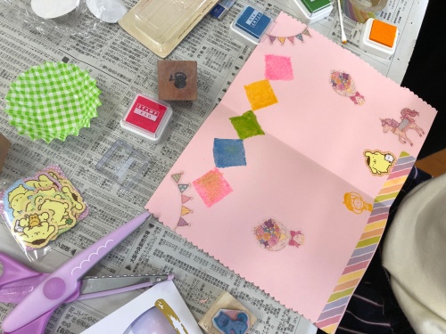 色画用紙、布も古布やらかわいいのやら色々。シールや切手やら、、、用意していましたが、、、
