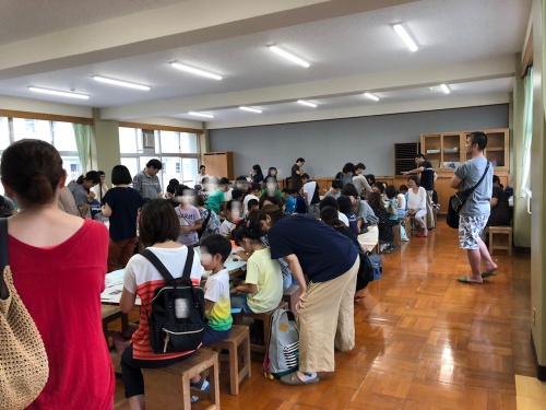 3年生全員、約60名と保護者の方々で 熱気がムンムン、蒸し暑い😵