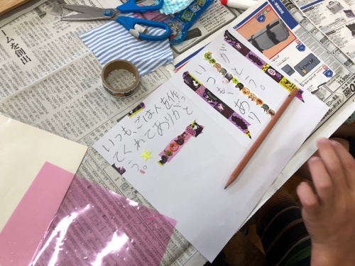 男の子の作品、これはカードの表紙部分ですが、中はまだ手つかず。