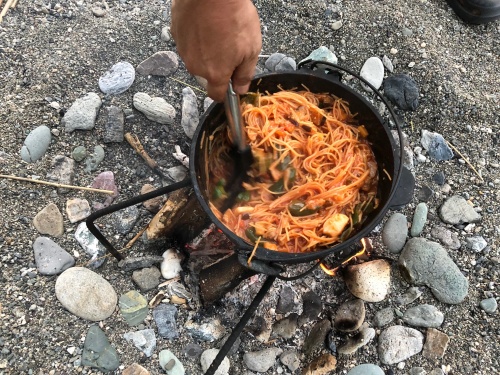 ベースキャンプにもどり、ご飯の支度。いつも各々で作り、一緒に食べるスタイルです。