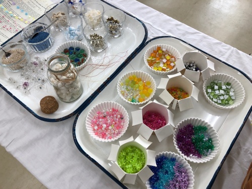 いつものように、ビーズや砂、カラータイル、シェル、ビー玉、サンゴ、星⭐️、リボン🎀、シーグラス、、、