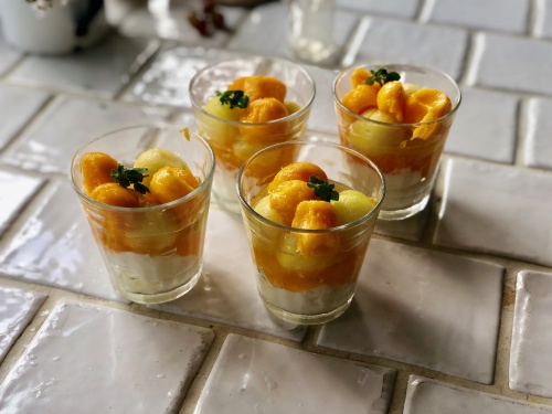 ヨーグルト入れてー、ジュレ入れてー、フルーツまぁーるくカットして入れただけ!!