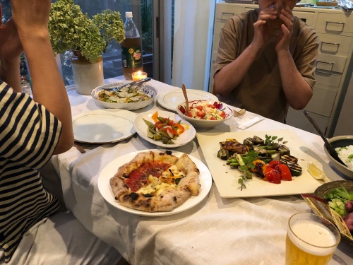 その日 昼間用事のあった山内は、最近近所にオープンしたというピザのお店のピザ🍕と野菜のマリネを持参(๑╹ڡ╹๑)