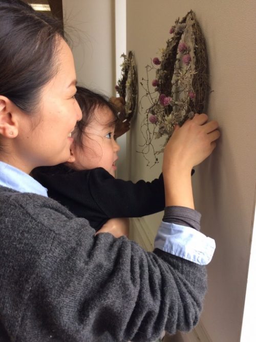 しずくのリースを作りにママと来てれまちたぁー。