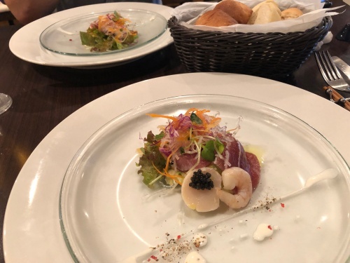 新幹線で小倉まで行き、到着が夕方だったので弟と二人でキャビアだのフォアグラだの、トリフだの計8品を堪能。