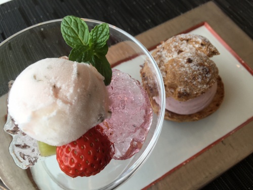 デザート 苺シュークリーム、苺ゼリー寄せアイスクリーム果物