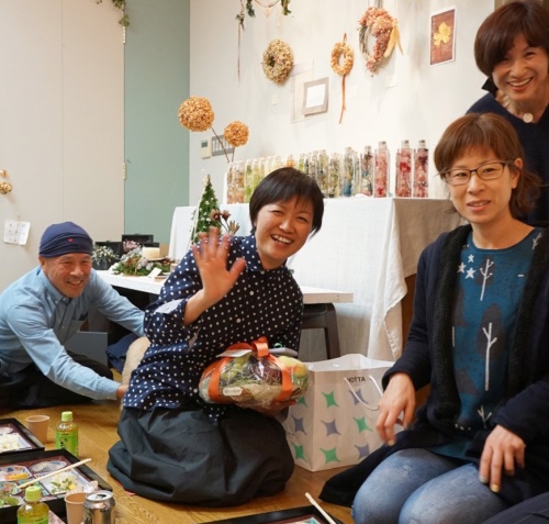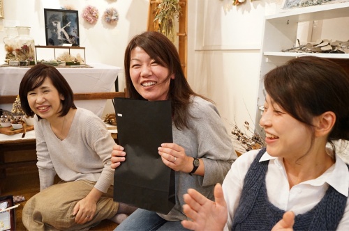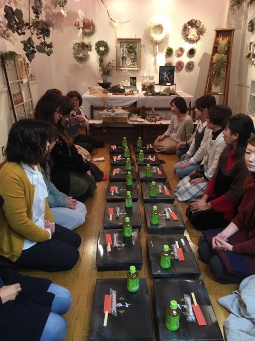 レッスンに来ている方、目的はそれぞれだと思う、花を通して時間を楽しみたい人、プロになりたい人、お話しがしたい人、みんなの顔を見てお茶を入れてくれる人(笑)。