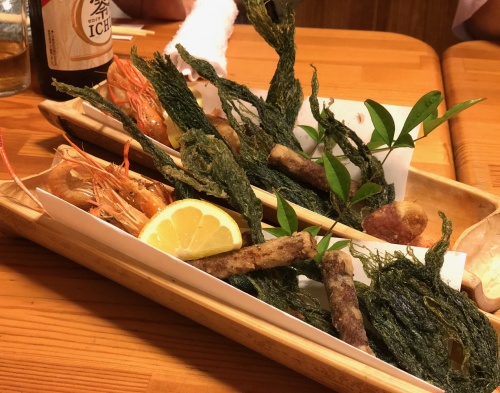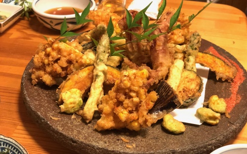 揚げ物エトセトラ〜揚げ物は人に揚げてもらうに尽きる、コーンやアスパラが特に美味しかった!!