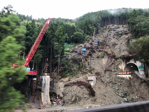 行く途中、高速道路の土砂崩れをパチリ!!これは、開通までには時間かかりそうです。