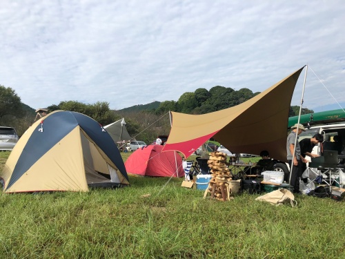 こちら木津川のキャンプ場、中々の混み具合ですヾ(・ω・`;)ノぁゎゎ