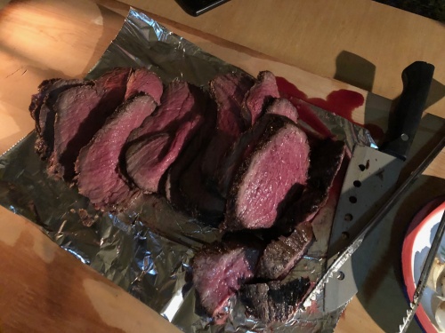 晩ごはんは、初のローストビーフ作り、上手くいくかなぁ〜? ヒゲ、奮発しやした。