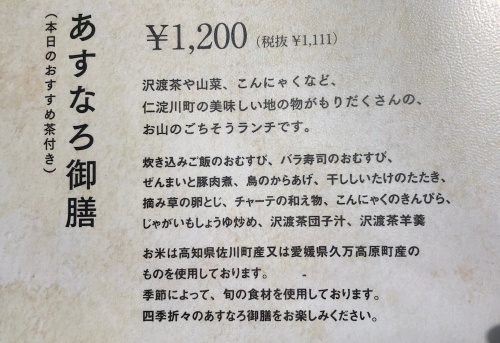 車は一路、仁淀川町鷹ノ巣へ お茶農家さんのお店 「あすなろ」です。