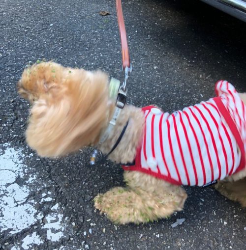 テラス席ならアンも大丈夫かと思いきや、アカンかった╭︎(ಠ_ಠ٥)╮︎