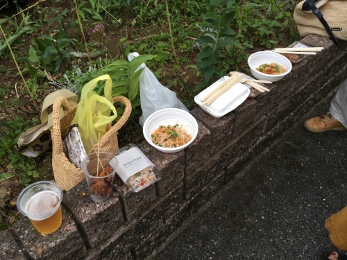 我ら3名は、2000円ずつ出し合って その中から片っ端に空いてるところ、美味しそうな所で買いあさり、座る所を探して公園へ、、、