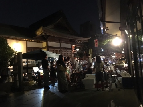 境内の灯りを眺めながら、ベンチで座って食べれて、夏のひと夜を楽しみました。