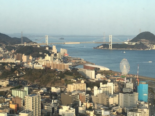 こちらは、昼間の関門海峡、タワー🗼から撮影したもので、手前が下関で奥が門司です。