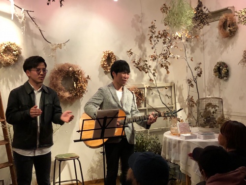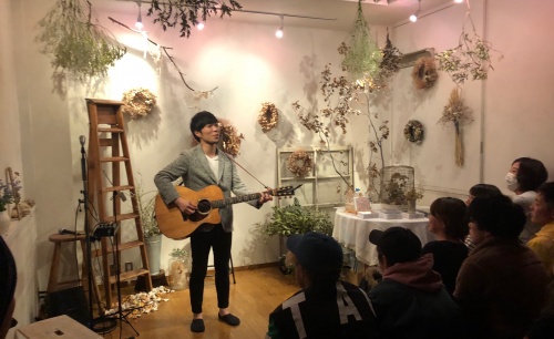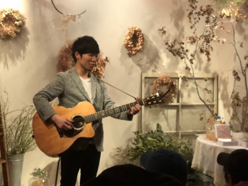 エクリュの森でギター片手に歌う瀬戸山さんは、アンプは使わずアカペラでした。