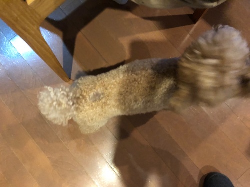 生え揃ったら、トイプーには珍しいブチ犬になるなぁー