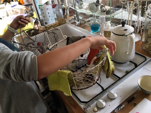 午後からは、ブーケの下ごしらえ〜〜お花のワイヤーリングです。
