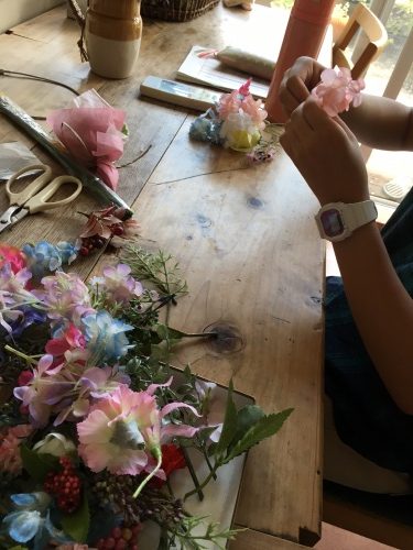 コツを掴んだNさん、タイプの違うお花も自分で考えて工夫してこなしていました。