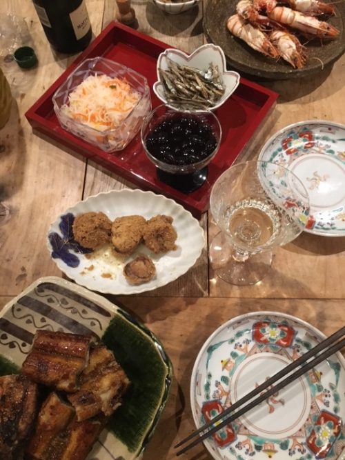 そしてブルーさんの4点セットや本池澤で買った鰻や海老です。