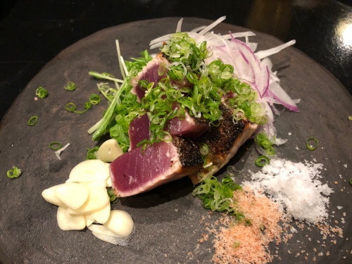 カウンター、メニュー表、小皿、スタッフのウェアに至るまで 黒尽くし、、、