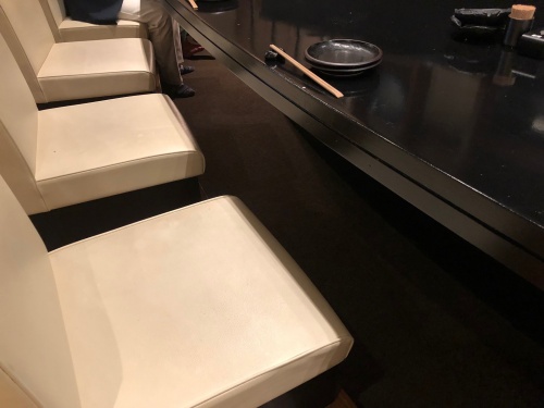私達は、カウンター。こちらも掘りごたつタイプで 白いゆったりとした椅子で落ち着いた雰囲気です。