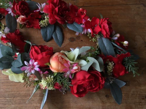 壁に飾っても大丈夫なように、ネック部分はリボンで仕上げました。