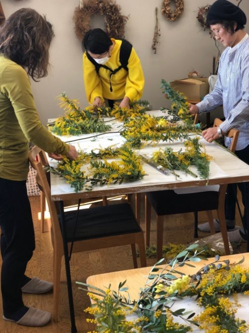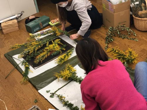 2月のミモザフレームのレッスン、無事土曜日に終了しました。ハックション🤧