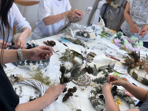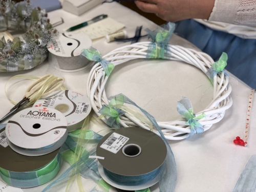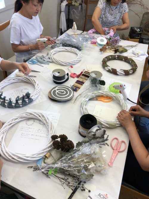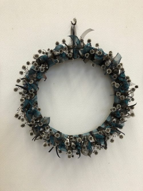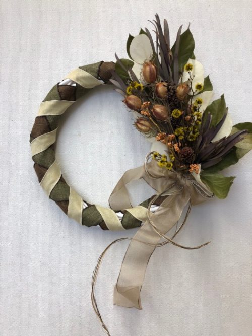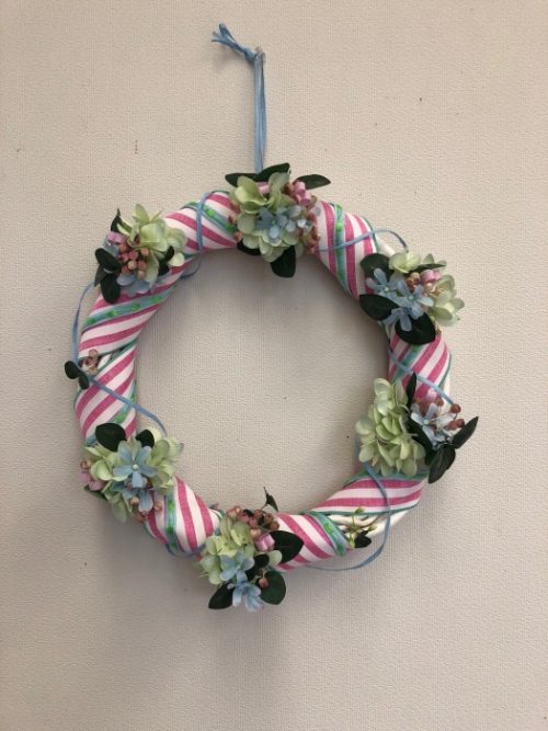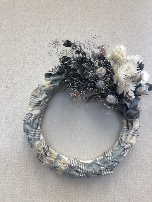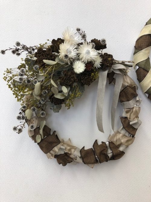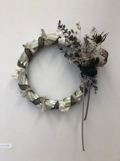 シックな色合いのリースが多い中、キレイな色のリースを見ると 逆にホッとしてしまいます。