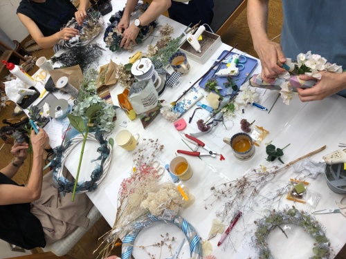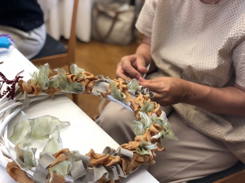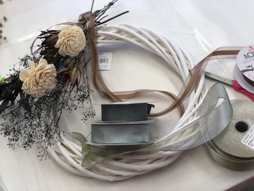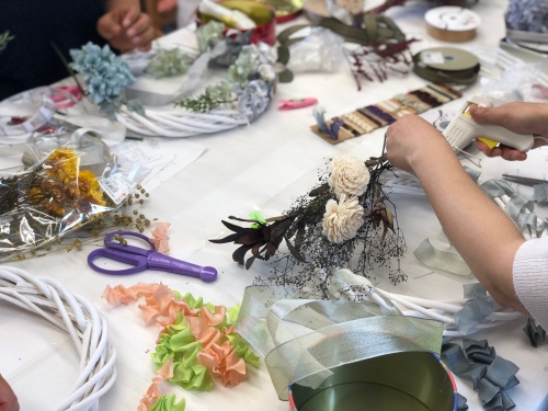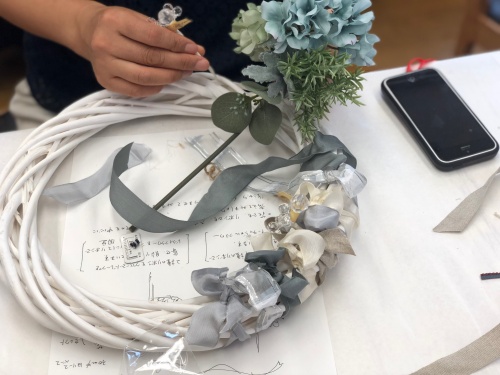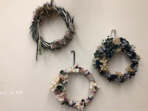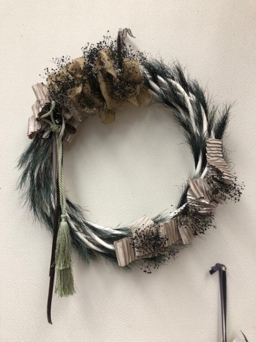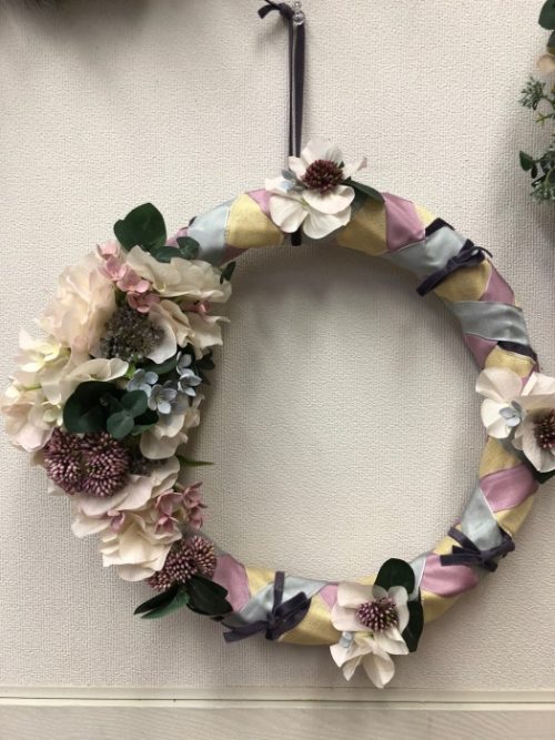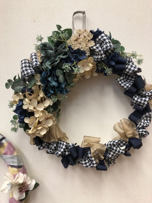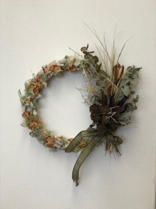 シックな中にもふんわり甘さのあるリースが完成しました。