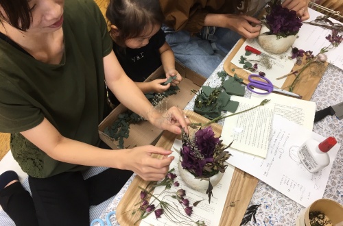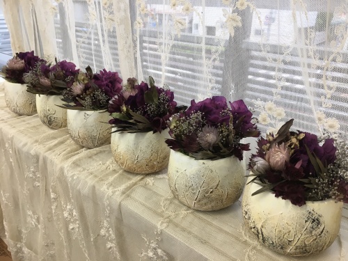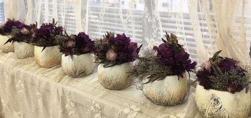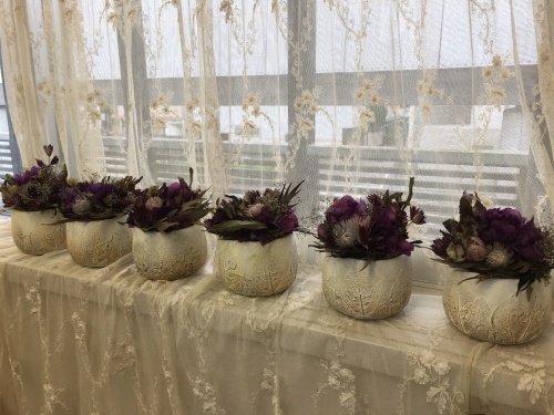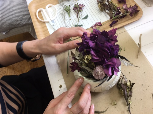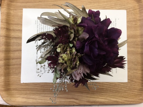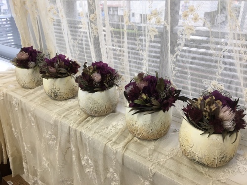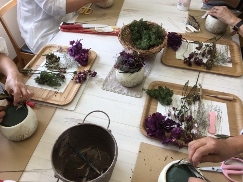 ぶどう🍇月のアレンジと名打った今回のレッスン、後で分かった事ですが 器の葉のレリーフはぶどうの葉でした。(^-^)