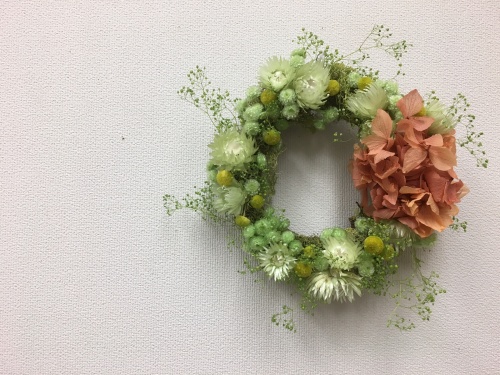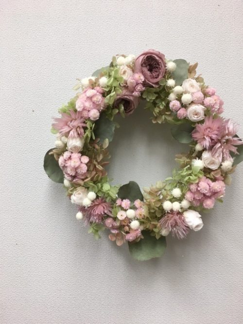 この方は、花材をセレクトしている時にあまりにたくさん抱えていたので 20㎝リースベースに変更してもらいました(笑)