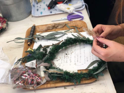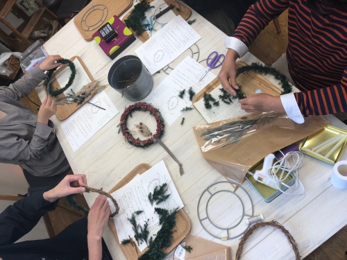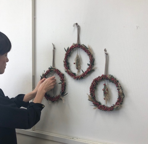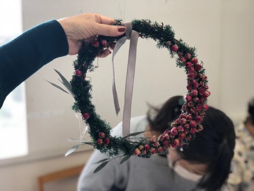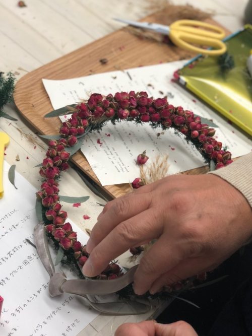 相談しながらですが、花の向きや花の大きさを考えて入れていく事がきちんと出来ています。