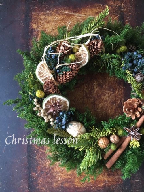 今年は、スパイシーなクリスマスリースにしました。(#^.^#)